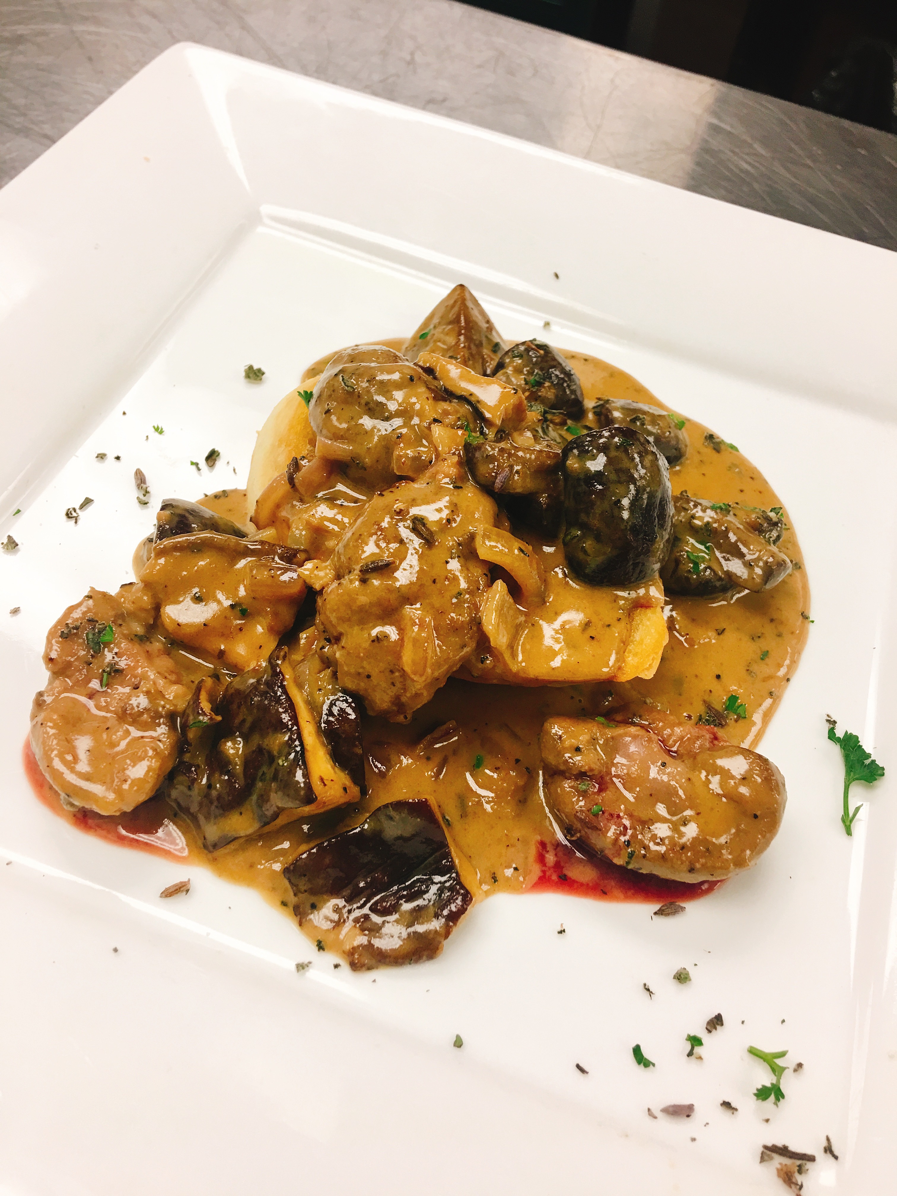 Noisettes De Veau w/ Polenta, Wild Mushroom Ragout, & Mixed Veggies (College)