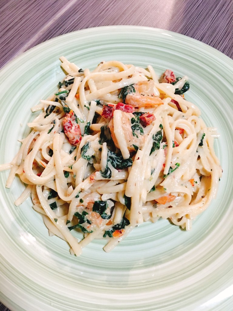 Sun-dried Tomato, Shrimp, & Spinach Alfredo (Home)